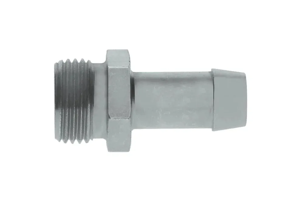 SA-ende med metrisk utvendig gjenge, 24° konisk tetning, beregnet for lavtrykks gummi- og plastslanger uten forsterkning og med tekstilforsterkning, med utvendig stålomfletting. Vanlig brukt i fleksible rør til sanitærutstyr, drivstoffsystemer, luftinstallasjoner osv. Materiale: karbonstål, galvanisert.