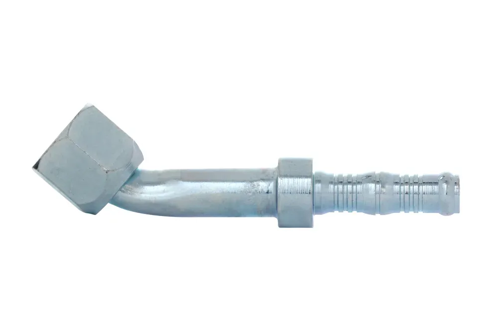 45° BURGACLIP-ende med innvendig UNF SAE-gjenge – tetning på 45° konus, for klimaanleggsslange type 3090. Tillater tilkobling av gummislanger med komponenter i klimaanlegget. Klemmer og bånd er tilgjengelige som separat sortiment. Materiale: stål.