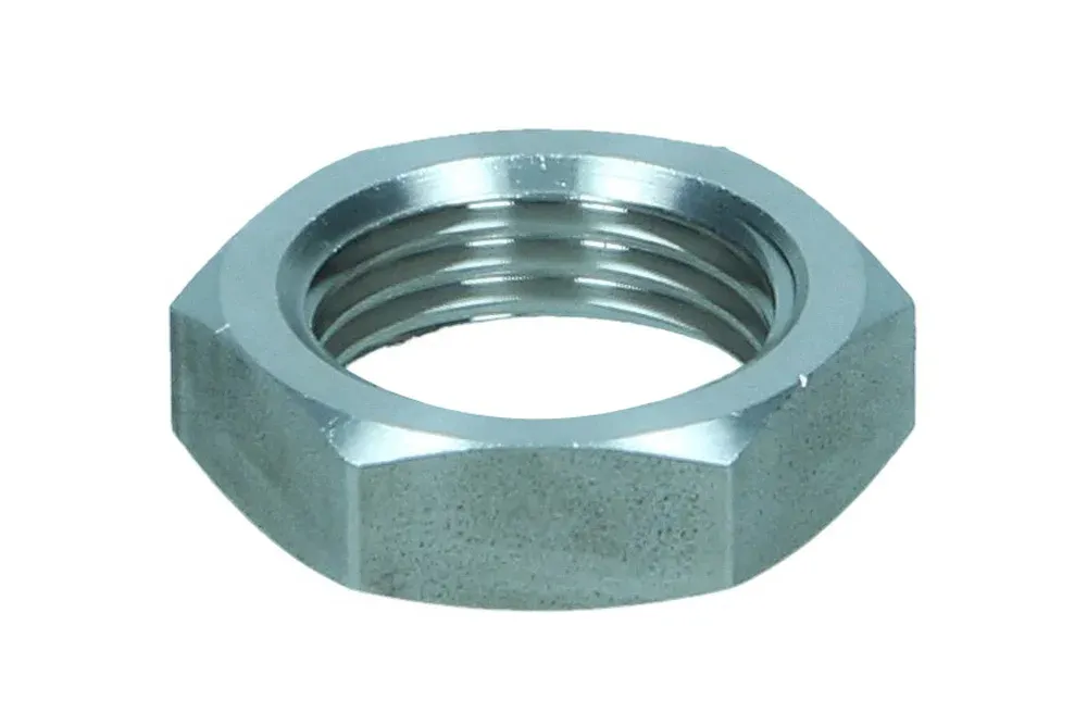 Kontramutter type A108 med BSP-gjenger for bruk med adapter type A107. Materiale: stål AISI 316L.