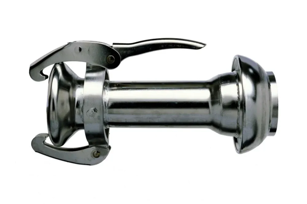 Reduksjonskobling med spakforbindelse LAUX 42 hun-hann med bred anvendelse, for eksempel: for transport og lossing av bulkvarer (korn, mel, fôr, granulat, sement, mineraler), for trykk- og vakuumpumper, for bygging av midlertidige vann- og luftinstallasjoner i bygg, gruvedrift, landbruk, for vanningssystemer. Når du velger kobling for et medium annet enn vann, bør du være oppmerksom på riktig valg av pakningsmateriale. Standard tetning er en pakning av EPDM. Materiale: karbonstål, galvanisert. Maksimalt arbeidstrykk: 12,5 bar (for væsker), 8 bar (for luft). Tetthet ved vakuum. Arbeidstemperatur: fra -50°C til +120°C.