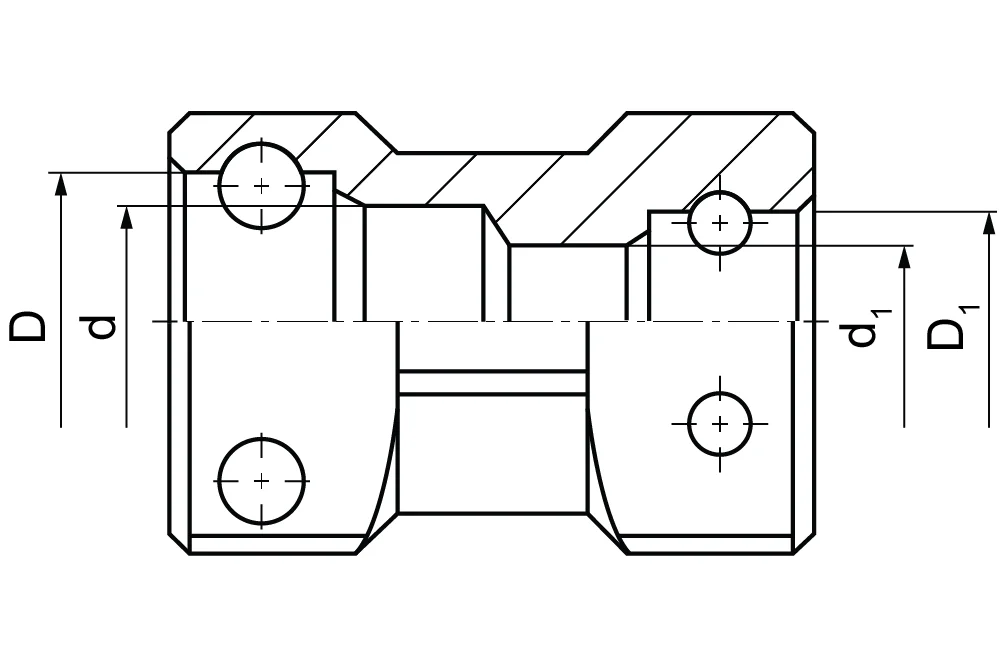 Reduksjonskobling for STECKO-systemet for bruk i hydrauliske systemer for gruvedrift. Materiale: automatstål, galvanisert.