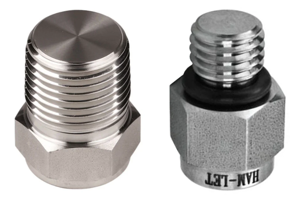 Sekskantplugg med utvendig gjenge NPT, BSP, BSPT, UNF og UN, for gjengeforbindelser hovedsakelig beregnet for kjemisk, petrokjemisk, farmasøytisk industri, energi, kjernekraftverk og prosessingeniør. Pluggen med UNF og UN gjenger er utstyrt med en o-ring pakning. Materiale: stål AISI 316. Pakning: o-ring FKM 90.