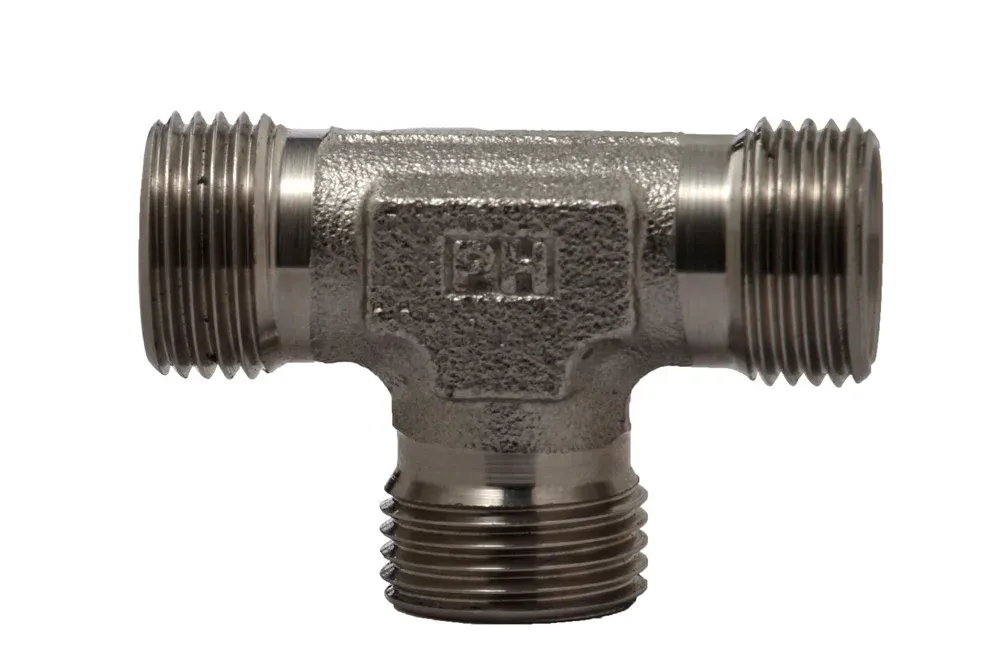 DIN 2353 T-kobling, type T: 24° DIN 2353 sete med metrisk utvendig gjenge. Finnes som: L (lett serie), S (tung serie). Materiale: stål AISI 316.