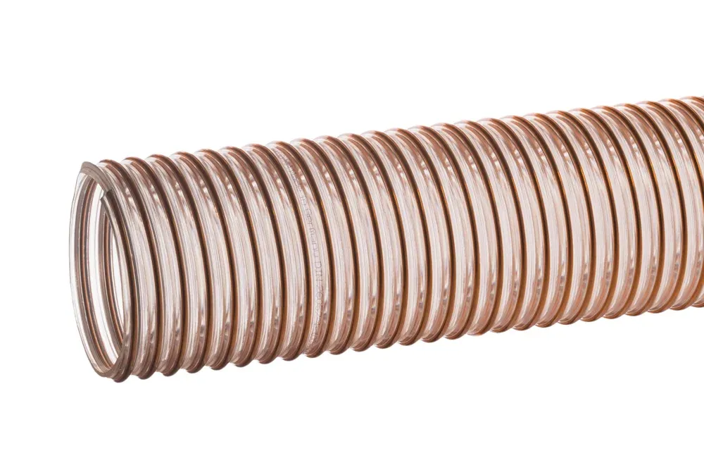 Svært sterk, med tykk vegg og tykk spiral, fleksibel slange beregnet for vakuumavtrekk og transport av slipende materialer som sand, grus, korn. For alle typer industri, spesielt brukt til lasting og tømming av siloer, kjøretøy og sugegravemaskiner, omlasting fra tankbiler osv. Den tykke veggen og den svært tette forsterkningsspiralen gir høy motstand mot vakuum. Glatt innvendig, ikke komprimerbar, ikke veldig bøyelig, men fleksibel, også ved lave temperaturer. Utmerket motstand mot slitasje, også motstandsdyktig mot mikrober og hydrolyse. Ikke giftig, inneholder ikke halogenforbindelser og myknere. Motstandsdyktig mot olje og bensin. Slangen er merket med en pil som indikerer riktig retning for mediestrømmen. Slangens veggtykkelse måles mellom spiralen. Andre diametre kan være tilgjengelige på spesialbestilling. Slanger ECO 2.0 og ECO 2.5, uavhengig av tykkelse, skiller seg fra hverandre i konstruksjon, og dermed også i parametere. ECO 2.0 har større motstand mot vakuum på grunn av den tette spiralen, men er mindre bøyelig, mens ECO 2.5 med større spiralstigning er mer bøyelig og fleksibel, spesielt i større diametre. ECO-slange produseres i en produksjonsprosess i samsvar med bærekraftig utviklingspolitikk, hvor det brukes råvarer fra resirkulering av rene produksjonsavfall, fornybar energi, lukket vannkretsløp og andre innovasjoner. Slangemateriale: gjennomsiktig polyeter-polyuretan. Forsterkning: spiral av ståltråd. Veggtykkelse målt mellom spiralen: 2,0 mm (ECO 2.0), 2,5 mm (ECO 2.5). Arbeidstemperatur: fra -40°C til +100°C (midlertidig opp til +125°C).